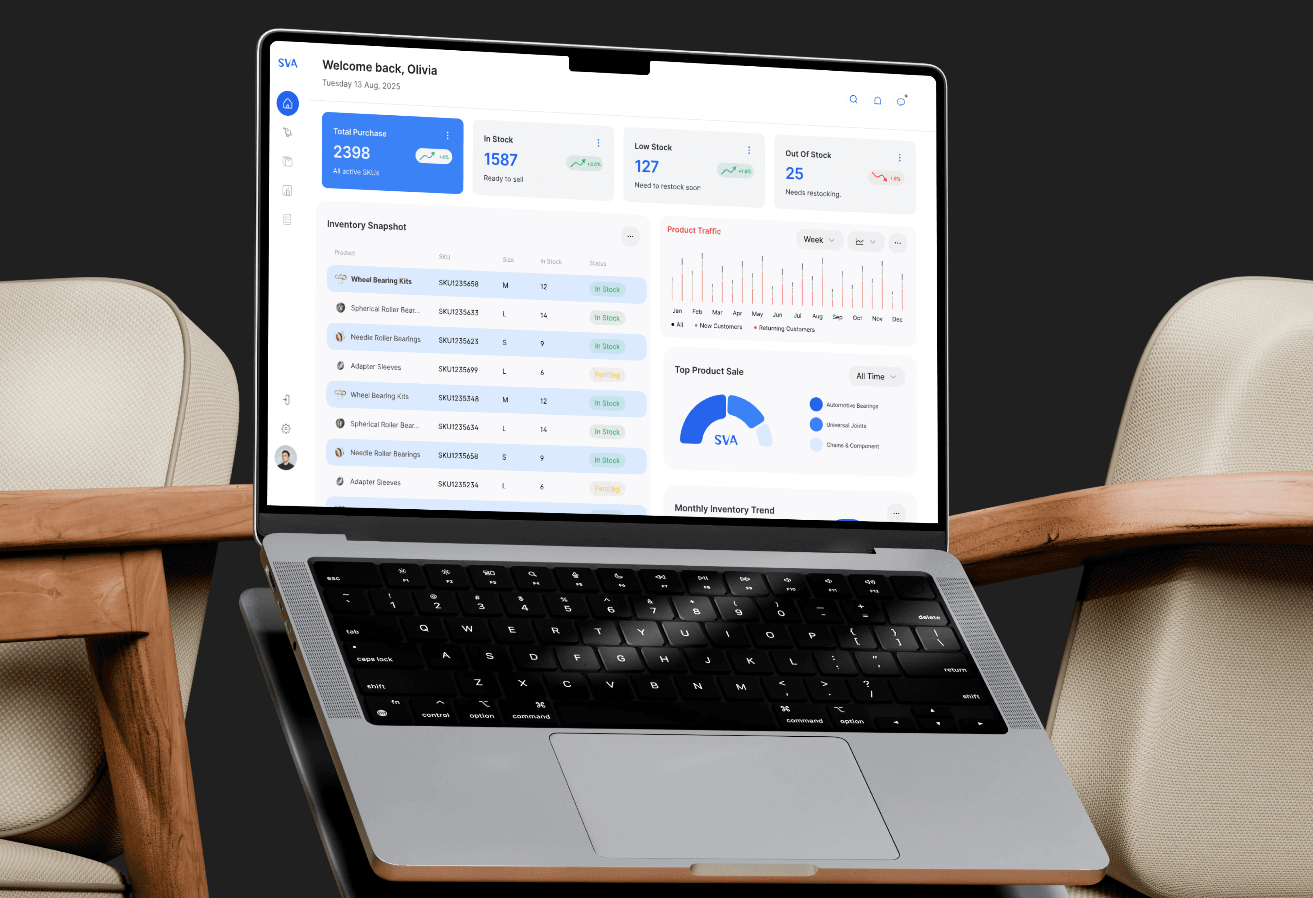 I designed a clean and intuitive inventory management dashboard with essential features tailored for small automobile shops. The system allows the owner to log in securely, view daily metrics at a glance, track real-time stock levels, manage product details, and monitor customer trends. By simplifying flows and reducing friction, the solution transforms a manual process into a smooth digital experience.