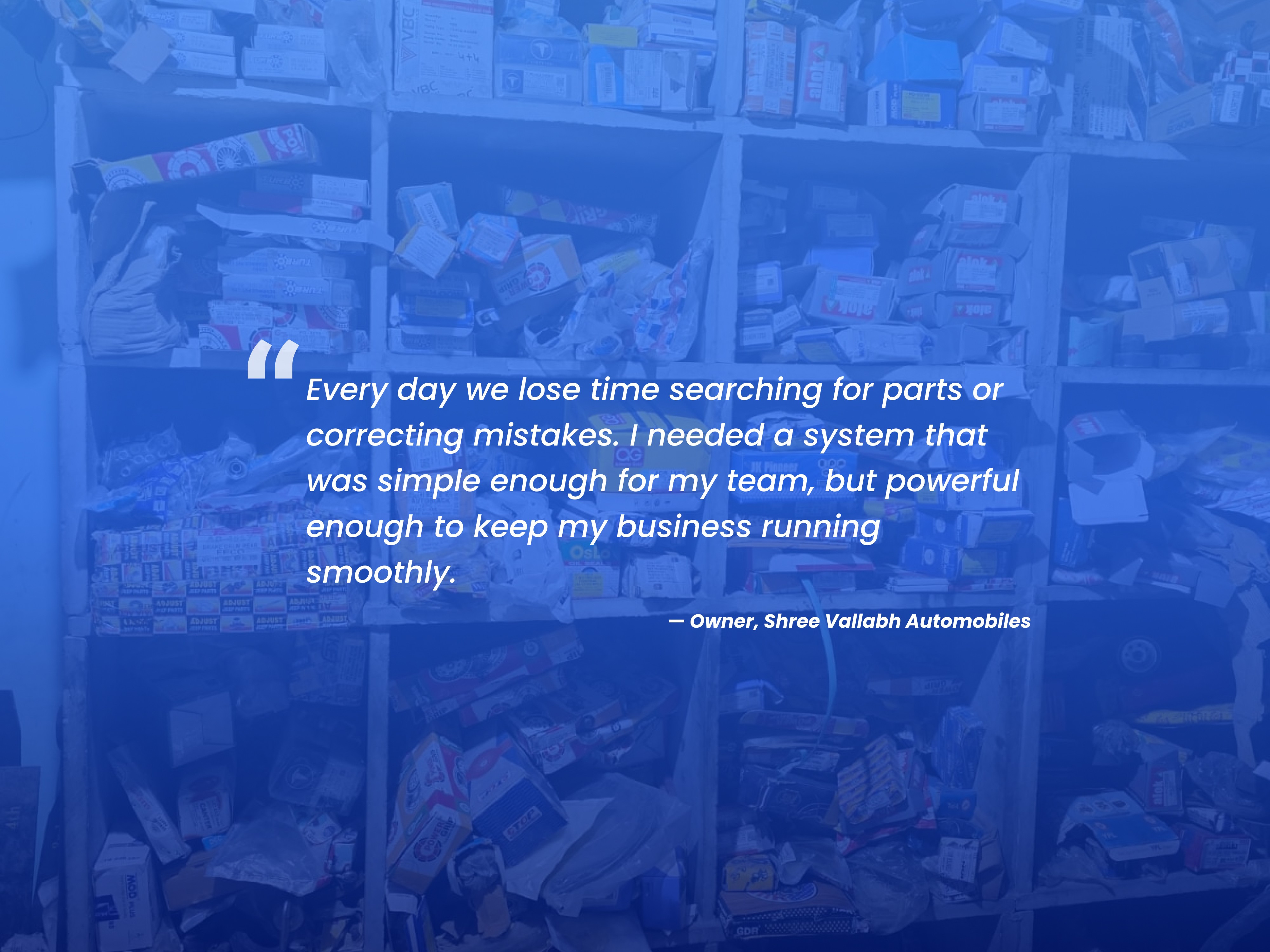 1. Manual and Inaccurate Tracking - Inventory was maintained on paper, making it easy to lose information and difficult to update accurately. 2. No Real-Time Stock Visibility - The owner had no quick way to check what was running low, which parts were selling fast, or which items needed restocking. 3. Inefficient Workflow - Adding new items, checking customer trends, or updating stock required too much time and often resulted in delays and errors.
