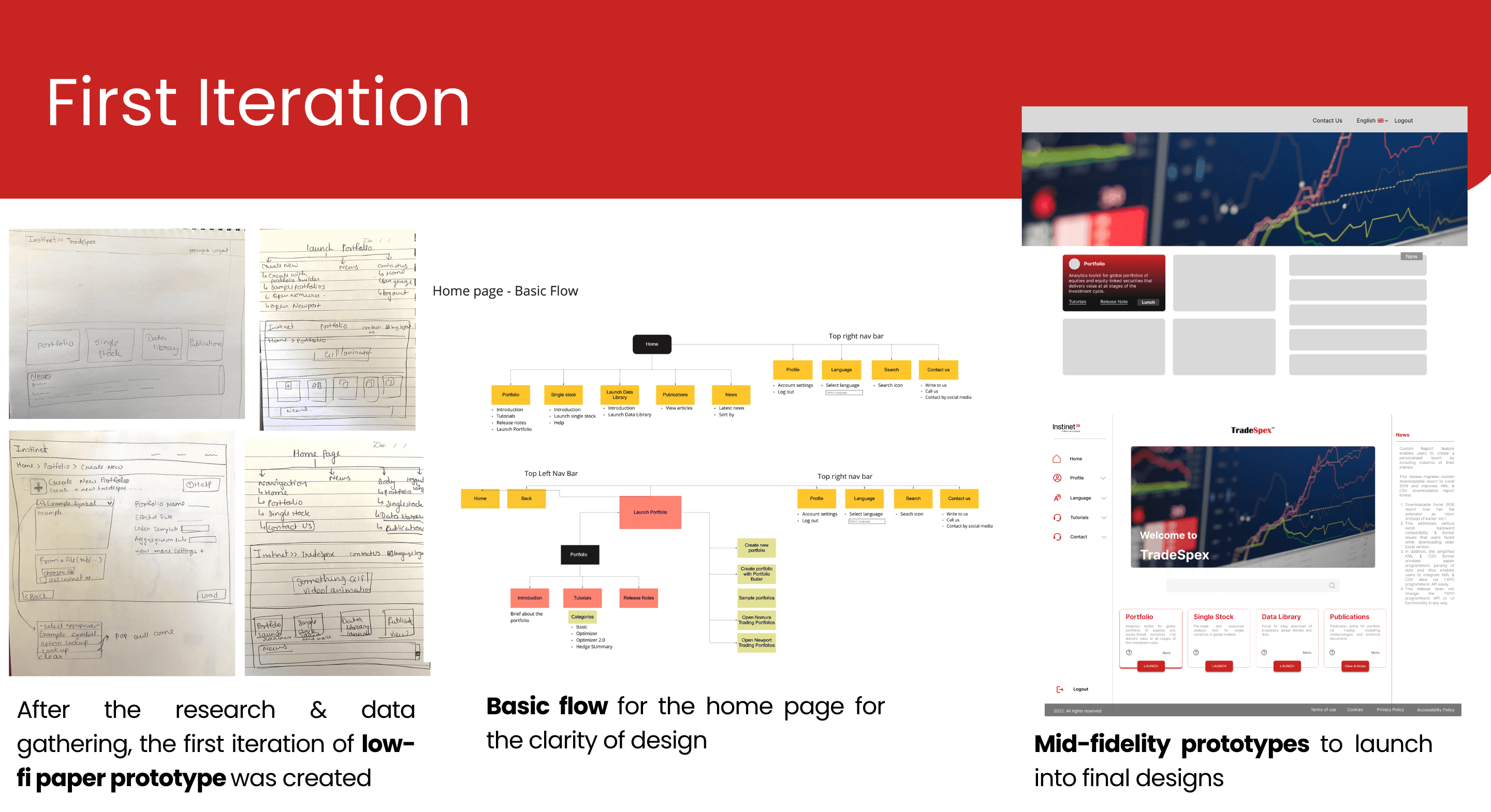 To enhance Tradespex’s usability, the UI was modernized for a more intuitive experience, portfolio management was streamlined with tooltips and a step-by-step process, and onboarding tutorials were introduced for better guidance. Interactive elements like a chatbot and live helpdesk improved engagement, while an easy-switch feature enabled seamless navigation, eliminating the need to reload portfolios repeatedly. The design was also made more inclusive to cater to a broader audience.